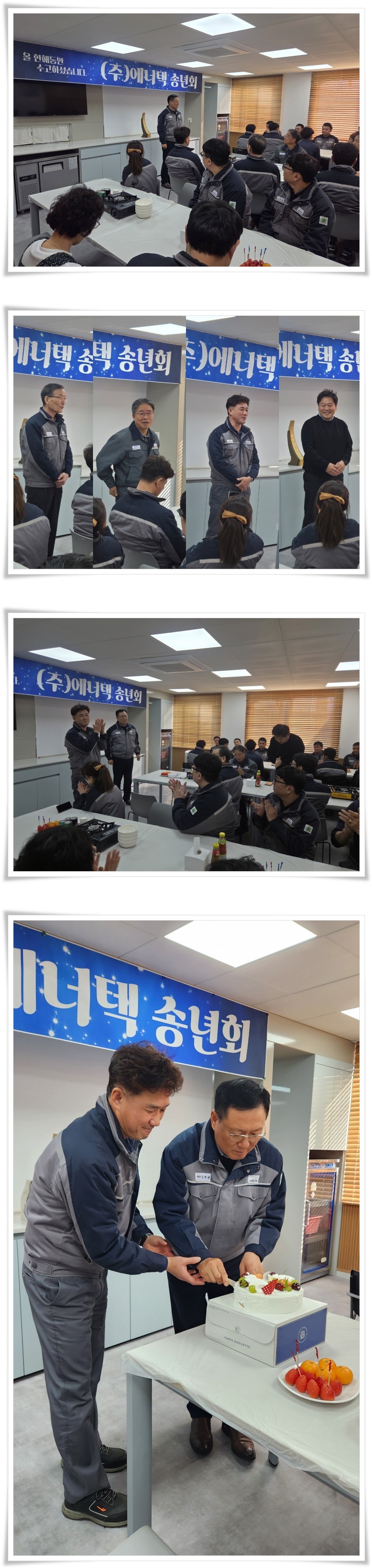 ㈜에너텍은 연말을 맞이하여 본사(공장)에서 전 임직원이 한자리에 모인 가운데, 송년회를 실시하였습니다.